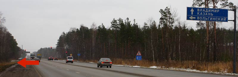 Чтобы добраться до нас, Вам нужно ехать по Горьковскому шоссе до г. Покров. Проехать его целиком и на первом светофоре после окончания города повернуть налево.